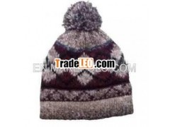 fashion jacquard knitted winter hat with pompon,1.material: acrylic